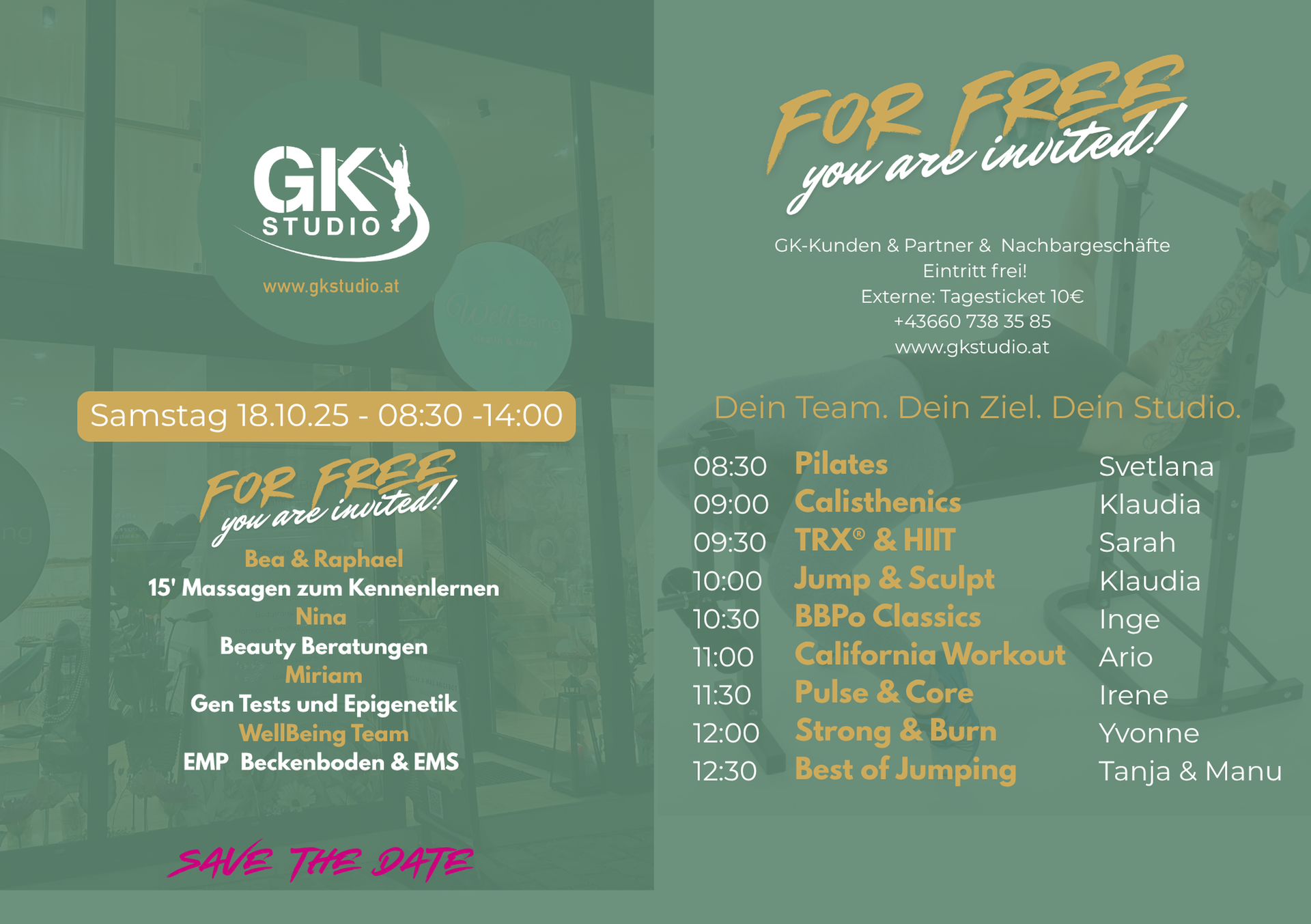 Das GK-Studio- Geschäftsführer-Team steht für Power, Leidenschaft und Zusammenhalt: Dein Team. Dein Ziel. Dein Studio.