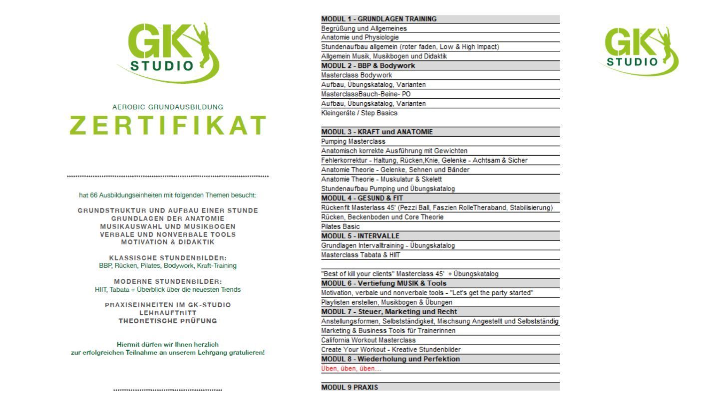 - Du möchtest gerne als Trainerin im GK-Studio-, GK-Firmenfit-, oder im Turnsaal Konzept Team einsteigen